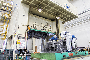 量産プレス金型部門では、単発型・トランスファー型・順送型などの量産用プレス金型と治具の製作をしています。金型の設計、CAEを駆使した解析から、1000tメカ式プレスによる金型トライまで社内で対応しています。
